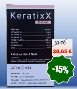 KeratixX (ARGAN) à base de kératine, vitamines B, acide folique, biotine, vitamine D3 et zinc pour le soin des cheveux et des ongles